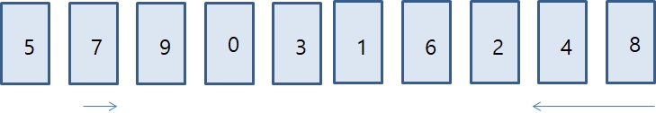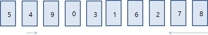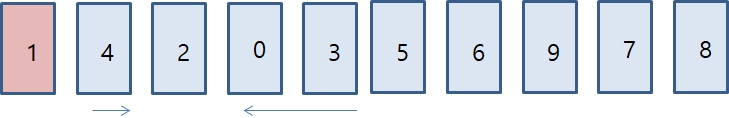 에서부터 피벗보다 작은 데이터를 찾음큰 데이터와 작은 데이터의 위치를 서로 교환